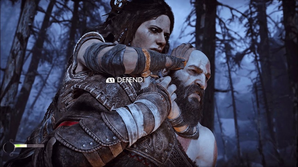 There’s a scene, around the halfway mark of the game that I would like to mention. After Brok’s death at the hands of fake Tyr (Odin), Atreus completely shuts down emotionally. As Kratos and Atreus leave to process what just happened, they find themselves in Midgard (their home), hunting deer. Kratos asks the question , “What are we going to do?”. Atreus responds with, “hunt deer”. Then Kratos goes, “Where?”. Then Atreus says “In the direction of deer”.