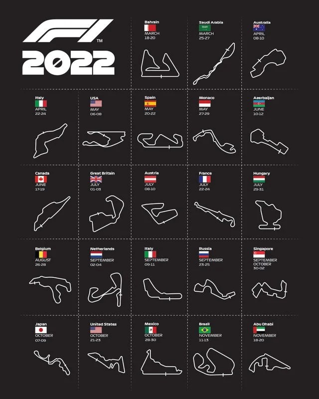 - The image above was taken from SportsMonks (shows tracks used in F1 2022 season)